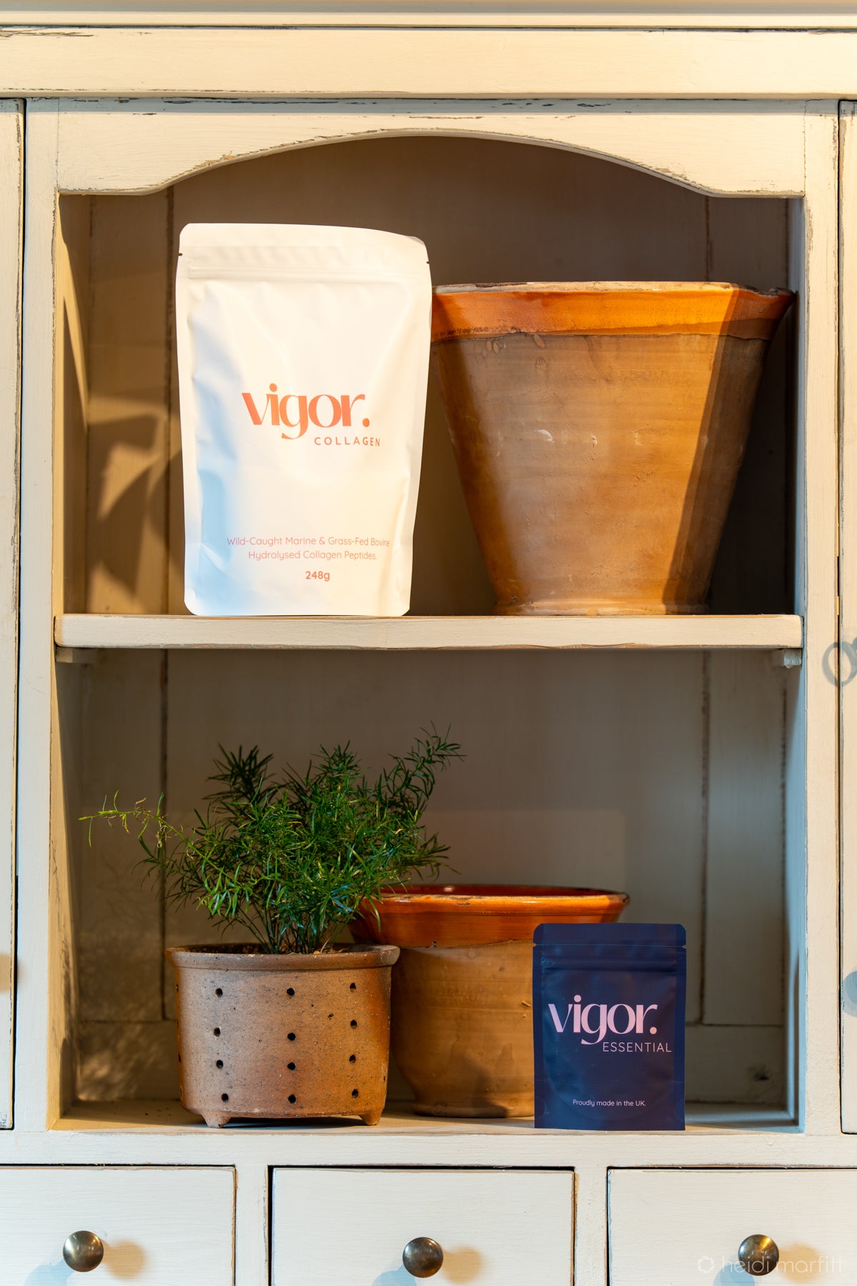 Vigor Vitamins are All Thriller, No Filler; only including what is necessary in our products and our packaging. Yorkshire-made and eco-conscious, our packaging is not only beautiful, but it’s fully recyclable. Our refill pouches are just the right size for a 30-day supply of supplements.